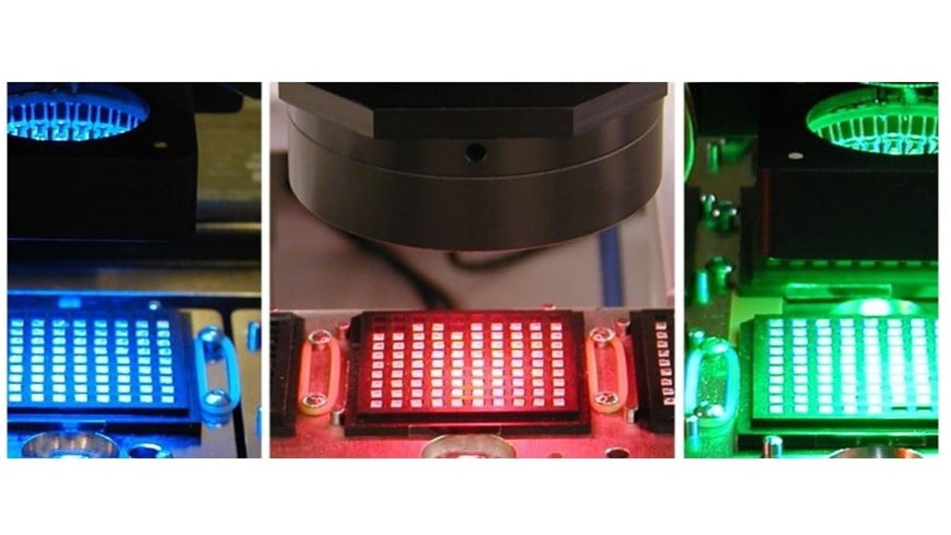 Multi-colored lighting is required to successfully vision process a wide range of materials. Tricolor (i.e., red, green, and blue) programmable lighting provides the capability for processing challenging alignment surfaces, such as gold traces on alumina. Lighting intensity must be programmable and include both ring and collimated lights for a complete lighting solution. It also must be possible to individually program optimal light settings for each die and substrate fiducial alignment.