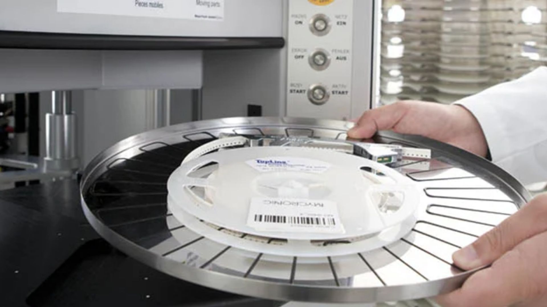 Notre système de manipulation des matériaux repose sur une base de données des composants à l'échelle de l'entreprise. Associé à une étiquette ID de packaging unique, le système peut suivre la quantité et l'emplacement actuel de chaque bobine de composants, stick ou plateau. Les machines de placement indiquent la consommation réelle de composants pendant leur fonctionnement et ses informations sont enregistrées dans la base de données. Des codes-barres peuvent être utilisés pour suivre l’emplacement des stockages sous air sec, les zones de réparation et les postes de montage manuels.
