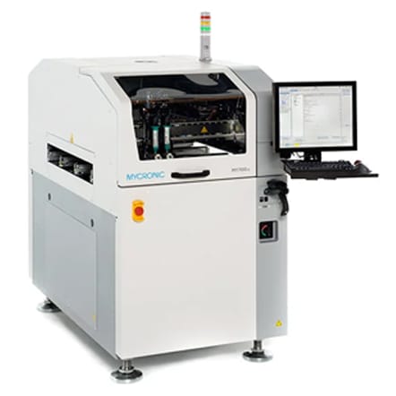 The MY700 Jet Printer ensures excellent volume repeatability and solder joint quality to reduce rework. The dual head option also make it possible to combine fi ne-pitch jet printing for the smallest BGAs and 01005 components on the same board as larger-volume deposits for QFNs and connectors. The result is a substantial increase in productivity in a wide range of applications.