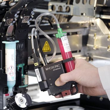 - Combines two process steps The unique combination of high-speed solder paste printing and assembly fluid dispensing saves costs and reduces line length.