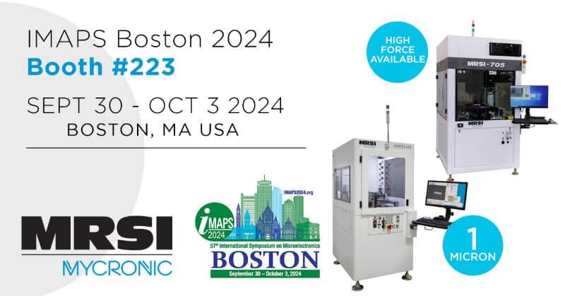 The exhibition floor will host over 90 booths, with companies from various segments of the microelectronics industry including Aerospace, Automotive, Computing, Industrial, Military, and Telecom/Datacom. Register for a Free Exhibitor Hall Visitor pass. Be sure to visit the MRSI’s Booth (#223) to learn about our latest product innovations including our active alignment solutions.