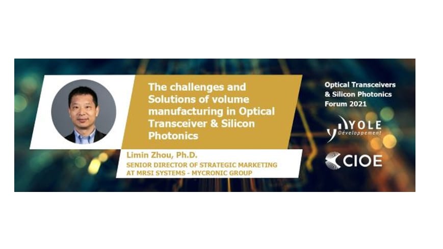 摘要:MRSI Systems战略市场高级总监,周利民博士受邀参加光收发器和硅基光电子论坛并将带来主题为“光收发器和硅基光电子量产的挑战及解决方案”的演讲。