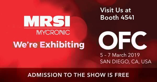 The Optical Fiber Conference (OFC) will be held at the San Diego Conference Center in San Diego, CA, USA from March 3-7, 2019. The exhibition is from March 5-7. Visit the MRSI Systems’ Booth #4541 at OFC 2019. OFC is the largest global conference and exposition for optical communications. Contact MRSI Systems to schedule a meeting.